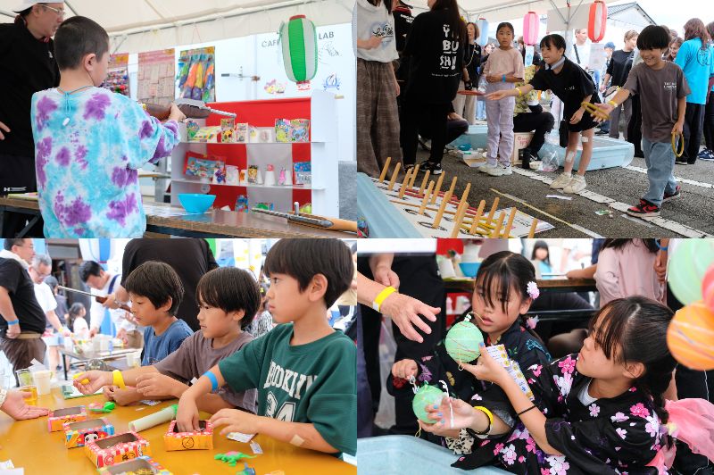 「カラフル縁日」は射的、輪投げ、手作りゲーム、ヨーヨー釣りなど、「昭和の時代には当たり前のようにあった子どものためのお祭りを本気でつくる」(雄谷理事長)を目指しました。そしてタイムスリップしたような昔なつかしい光景がこのとおり。